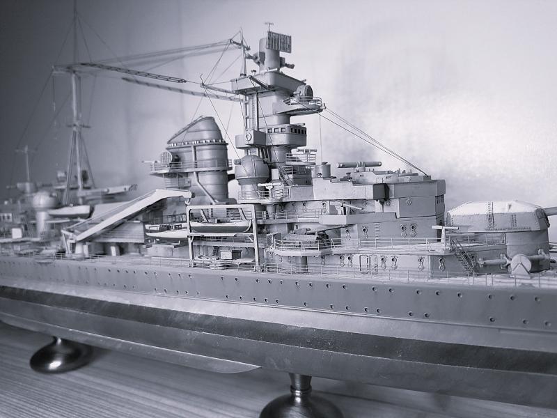 Aufbauten und Ausrüstungsgegenstände unter Zuhilfe von Flyhawk Ätzteilen ergänzt.