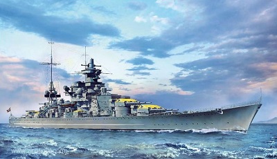 Bausatz der DKM Blücher 1:350 Trumpeter. Ätzteile von Eduard und Holzdeck Artwox.
